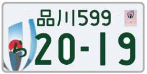 というのは冗談ですが、2019年のラグビーワールドカップ日本開催を記念して、 図柄やマーク入りナンバープレートが発行されているのはご存じかと思います。このナンバーに交換すると、黄色が白色になるというわけ。