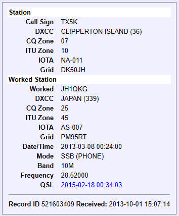 届いたカードにはグリッドも緯度経度も書いてなかったのです。当時の JARL は eQSL は OK でしたが TX5K は eQSL ナシ。 今は LoTW も OK になりましたので早速覗いてみると、アリマシタ。