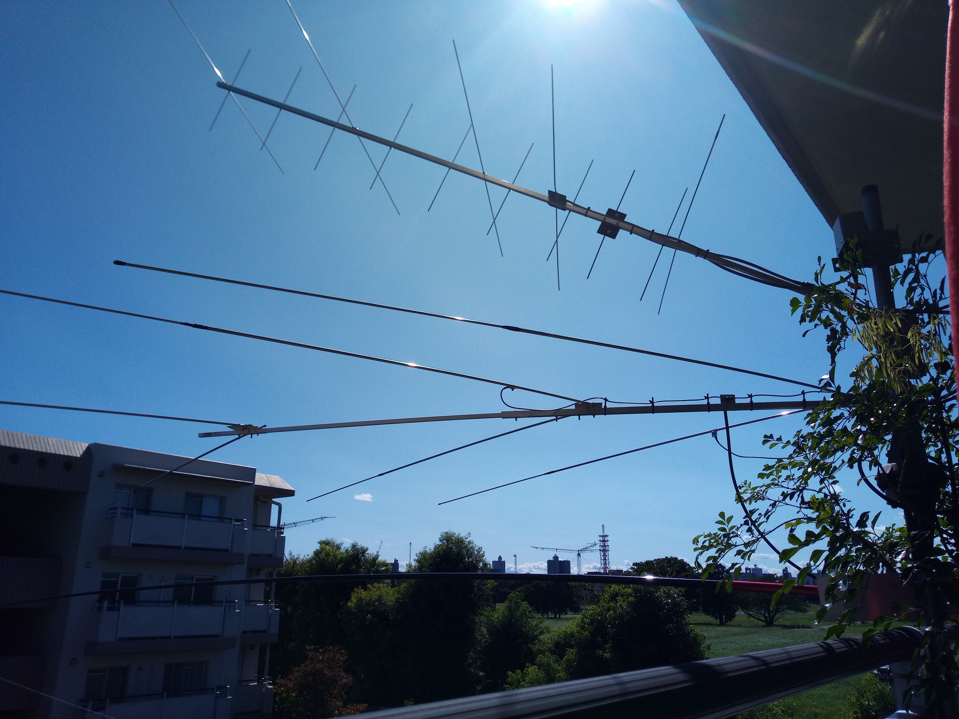 このところコンディションがいい日があり、ベランダからでも何局か海外も交信できるようになった感触では、以前のアンテナと比べて格段に良くなったというわけでもなし、かといって悪くなったというわけでもなし。